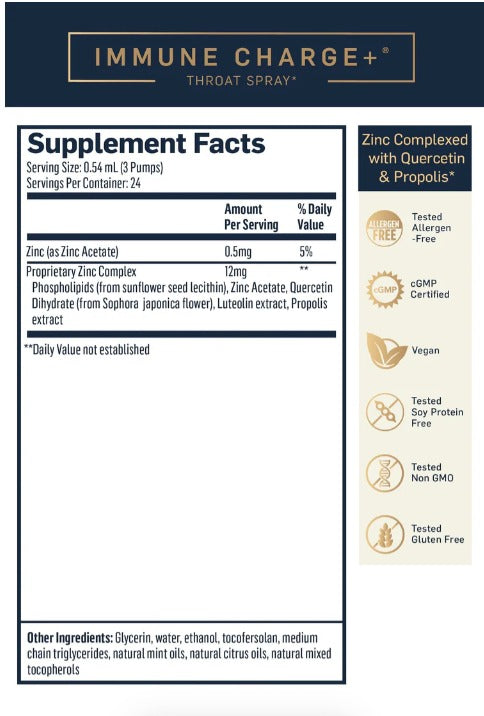 - Immune Charge+ Full Spectrum Immune Support - Use Immune Charge+ Throat Spray alongside our original Immune Charge+ formula to help provide comprehensive support for immune function and resilience.*